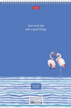 Блокнот А4 60л клетка Фламинго жесткая подложка на спирали