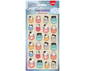Наклейки Котики в кармашках объемные ПВХ 21*10 см 24шт на листе