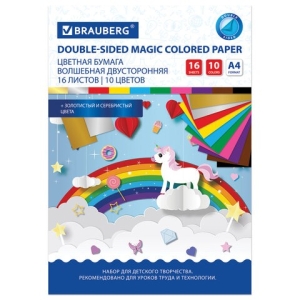 Набор цветной бумаги А4 16л10 цв А4 2-сторонняя офсетная Единорог