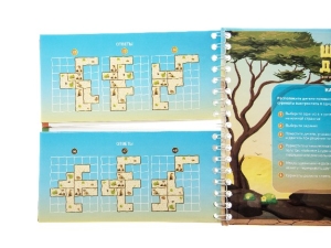 Выбирайте задание одного из четырёх уровней сложности и выстраивайте на игровом поле сторожевой пост из четырёх зверьков по горизонтали, вертикали или диагонали с помощью магнитных фишек.