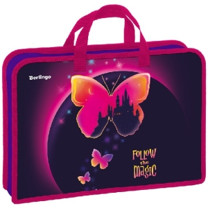 Папка с ручками 1 отд А4 Magic butterfly 340*245*75 мм пластик на молнии