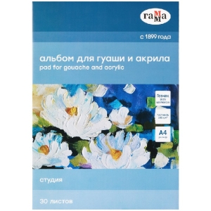 Альбом для гуаши и акрила А4 30л на склейке 180 г/м3