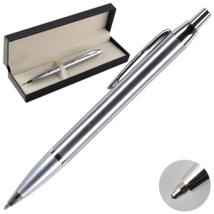 Ручка шар подарочная серебряный корпус нажимной механизм синяя