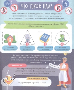 Как объяснить ребёнку, где переходить дорогу и зачем нужен светофор? С помощью весёлых рисунков и занимательных историй! Ваш ребёнок узнает о дорожных знаках и разметке, познакомится с участниками движения и видами транспорта. Интересные задания помогут развить внимание и логику.