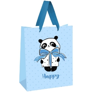 Сумка подарочная 26*32*12 см PandaGift_Blue матовая ламинация