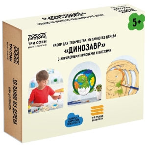 Набор для творчества 3D панно из дерева Динозавр с акриловыми красками и кистями