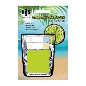 Блок закладок пластиковые фигурные 12х45 мм, 45х45 мм 60шт Лимонад