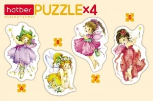 Цветочные феи. Пазлы фигурные 5-6-7-8 элементов 4 картинки