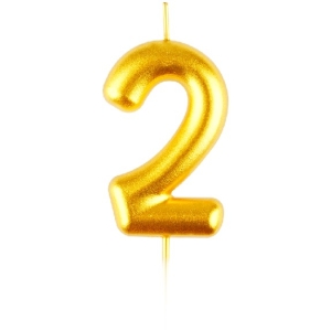 Свеча для торта с держателем Цифра 2 золотая 6 см