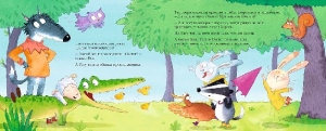 В домике с оранжевой, как морковка, крышей жили душа в душу овечка по имени Рагу и волк по имени Вок. Однажды вечером они нашли на дороге большое ничейное яйцо и принесли его домой. Вок хотел сделать из яйца омлет, но овечка ему не позволила. И правильно сделала, потому что из яйца вскоре вылупился крокодильчик, которого они назвали Омлет. Лесные звери сначала побаивались зеленого малыша, а потом полюбили его за доброту и веселый нрав. Правда, не все. Барсук твердил, что крокодил, когда вырастет, всех проглотит. Однажды после грозы их тихая речка разлилась, и бурный поток стал уносить утят от берега. Омлет устремился вдогонку, раскрыл пасть и захлопнул ее вместе с утятами. Неужели барсук был прав?