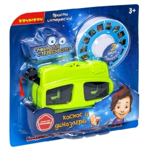 Очки-стереоскоп для просмотра 3D фотографий "КОСМОС И ДИНОЗАВРЫ" от Bondibon – это очаровательная игрушка в стиле ретро, позволяющая рассматривать объемные изображения. Хотите увидеть 3D динозавров или совершить впечатляющее путешествие в космос? Тогда вам нужны cтереоочки от Bondibon!