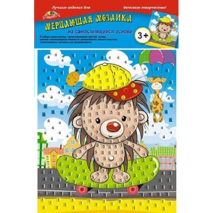Мозаика мерцающая самокл из мягкого пластика А5 Ёжик на скейте