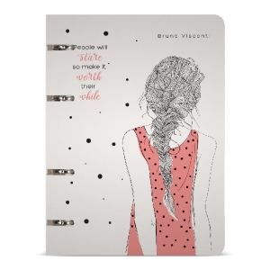 Тетрадь на кольцах А5 80л пластик обложка Девушка с косичкой