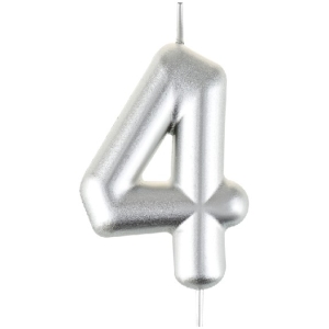 Свеча для торта с держателем Цифра 4 серебряная 6 см