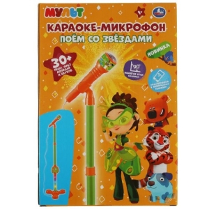 Караоке-микрофон «МУЛЬТ. Поём со звёздами» ТМ «УМка» – отличный подарок для маленьких поклонников современных мультсериалов:- 30+ песен, фраз, мелодий и звуков- со стойкой- меняется угол наклона- подключается к мобильному устройству- звуки аплодисментовМаленькому артисту непременно понравится этот красочный микрофон. Ребёнок с удовольствием будет слушать любимые песенки или выступать самостоятельно, подбадривая себя аплодисментами.Игра с микрофоном ТМ «УМка» развивает:- мелкую моторику- координацию- слух- чувство ритма- артистизм- творческое мышлениеРазмер: 16 х 53 х 5 см. Материал: пластмасса.Работает от 3-х батареек типа АА (в комплекте).Рекомендовано детям от 1-го года.