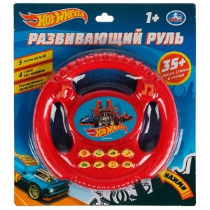 Музыкальный руль «Hot Wheels» ТМ «УМка» понравится юным поклонникам легендарных гоночных машинок:- 35+ песен, стихов и звуков- 5 песен из м/ф- 4 стиха про машины- реалистичные звуки автомобиля- яркий дизайнВаш ребёнок оценит этот красочный руль с изображением персонажей популярного детского мультфильма. Он с удовольствием будет нажимать на кнопки, слушать весёлые песенки, имитировать звук поездки и, конечно, рулить. С этой увлекательной игрушкой маленький водитель сможет придумать множество новых игровых сюжетов.Игра с музыкальным рулём ТМ «УМка» развивает:- моторику- мышление- воображение и фантазию- звуковое восприятие и музыкальный слух- памятьРазмер: 21 x 20 x 3 см. Материал: пластмасса.Работает от 2-х батареек типа АА.Рекомендовано детям от 1 года.