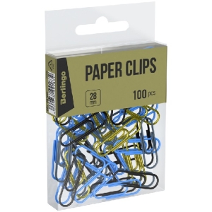 Скрепки 28 мм 100шт цветные ПВХ голубой+золотой