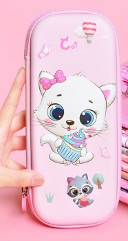 Пенал 1 отделение с карманом и вкладышем 23*10 см EVA Cat Кот с пирожным розовый