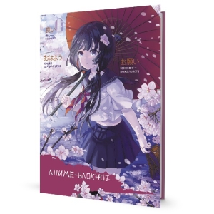 Блокнот Аниме девочка с зонтом в школьной форме темно-розовый