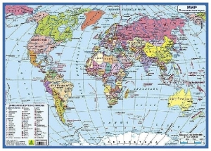 Карта Мира (планшетная) политическая. Карта двусторонняя на картоне с ламинацией.