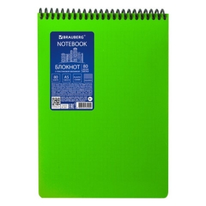 Блокнот А5 80л клетка Metropolis пластиковая обложка спираль зеленый