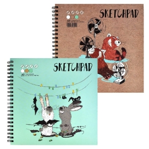 Скетчпад 195х195 мм 48л Забавные животные белый офсет, зеленый, крафт 80 г/м