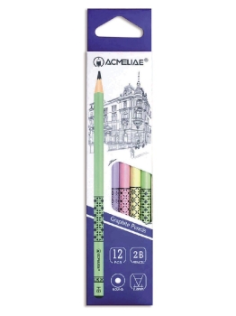 Карандаш ч/г 2B круглый цвет корпуса ассорти с принтом