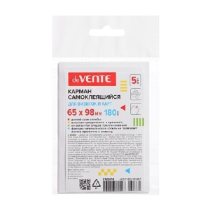 Карман самоклеящийся для визиток и карт 65x98 мм ПВХ 180мкм прозрачный фактура апельсиновая корка