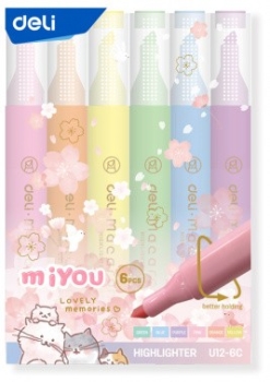 Набор текстмаркеров 6 цв MiYou скошенный 1-5 мм ассорти