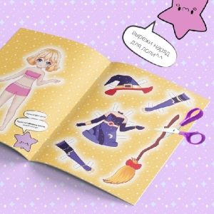 Книга-игра понравится любой девочке, которая интересуется модой и любит аниме. Внутри малышку ждёт много предметов гардероба и аксессуары, с помощью которых ребёнок сделает яркий образ для куклы. Остаётся лишь аккуратно вырезать наряды ножницами.