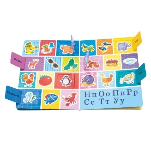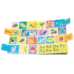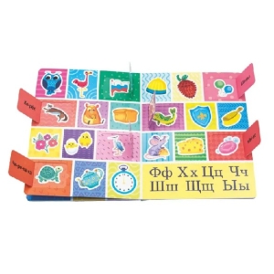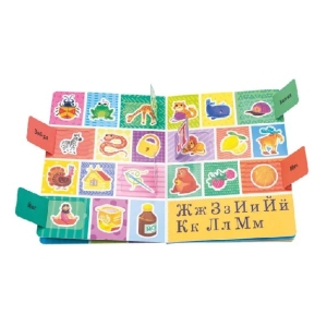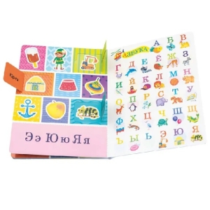 Эта книжка предназначена для первого знакомства малыша с буквами. Крупные яркие рисунки и узнаваемые образы помогут сделать первые шаги в мир грамоты. Картинки на каждую букву можно отыскать на страницах книги и в окошках-створках. Издание подойдет для занятий с детьми в возрасте от трех лет. Развивает память, мелкую моторику, зрительное восприятие, закладывает основы знаний о буквах и звуках. На каждую букву алфавита ребенок найдет целых три картинки! Книга большого формата, изготовлена из плотного целлюлозного картона, на обложке глянцевая ламинация, а все страницы покрыты защитным безопасным лаком. На пяти разворотах 31 окошко с яркими картинками. Размер окошек удобен для детских пальчиков. При первом прочтении рекомендуем помочь малышу открыть окошки. Для удобства первого открывания предусмотрена выемка под палец на каждом окошке.