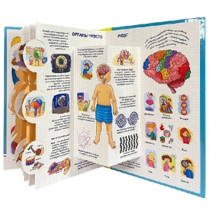 Это очень необычная по форме книга от издательства БимБиМон. Она напоминает карусель с объемными картинками, которую можно раскрыть на 360 градусов. При этом книгу удобно читать, развороты раскрываются полностью. В доступной, наглядной и увлекательной форме она рассказывает об устройстве человеческого тела. Мы спросили у разных мам, какие вопросы про тело человека задают дети. И постарались в нашей книге ответить на эти вопросы. Издание подойдет для занятий с детьми в возрасте от трёх лет. Развивает память, логику, мелкую моторику, зрительное восприятие, закладывает основы знаний о строении тела человека. Книга большого формата, изготовлена из плотного целлюлозного картона, на обложке глянцевая ламинация, а все страницы покрыты защитным безопасным лаком. На пяти разворотах 3Д элементы с познавательной информацией. Книгу можно использовать в качестве пособия для развивающих занятий.