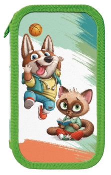 Пенал 2отд Веселые зверята 190х105х35 полиэстер молния зеленый
