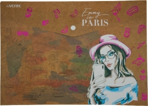 Папка-конверт на кнопке А4 Emmy in Paris 180мкм фактура крафт с рисунком
