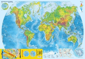 Эта обновлённая двусторонняя складная карта имеет обрезной формат 990х680 мм. В сложенном виде, при размерах 247,5 х 113,3 мм, она легко умещается в кармане. На одной стороне листа представлена красочная физическая карта мира масштаба 1:37 500 000, дополненная картами Арктики и Антарктиды, на другой стороне - политическая карта мира масштаба 1:37 500 000 с картой-врезкой Европы в масштабе 1:20 000 000. Каждое из государств мира дано со своим официальным флагом. Россия представлена в новых границах: с Донецкой и Луганской народными республиками, Запорожской и Херсонской областями, Республикой Крым и Севастополем. На дополнительных картах приведены также основные международные организации.