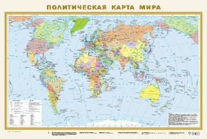 На Политической карте мира в масштабе 1:40 000 000 (в 1 см 400 км) показаны все независимые государства мира с их столицами, а также владения и территории с особым статусом. Россия представлена в новых границах: с Донецкой и Луганской народными республиками, Запорожской и Херсонской областями, Республикой Крым и Севастополем. Населённые пункты на карте даны в трёх градациях численности: более 1 млн жителей, от 100 тыс. до 1 млн, менее 100 тыс. жителей. Эта настенная односторонняя карта имеет размеры 870х580 мм. Рекомендована для широкого круга пользователей.