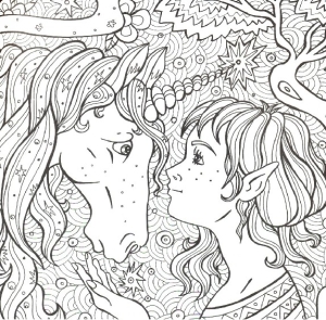 Раскраска антистресс Волшебный лес единорогов