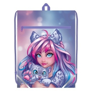 Мешок для сменной обуви 36x48 см Девушка с барсом полиэстер