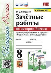 Данное пособие полностью соответствует новому Федеральному государственному образовательному стандарту основного общего образования и Концепции преподавания учебного курса "История России" в образовательных организациях Российской Федерации. Пособие включает зачётные работы по истории России, которые соответствуют содержанию и структуре учебника под редакцией А. В. Торкунова "История России. 8 класс. В двух частях". Задания можно использовать для обучения и самоконтроля учащихся, проверки домашних заданий, текущего и итогового контроля, подготовки к ОГЭ и ВПР. Ко всем заданиям даны ответы. Пособие предназначено учащимся 8 классов, учителям и методистам. Я.В. Соловьёв - кандидат исторических наук, доцент Государственного университета просвещения, старший научный сотрудник Государственной публичной исторической библиотеки России, автор пособий по истории России.
