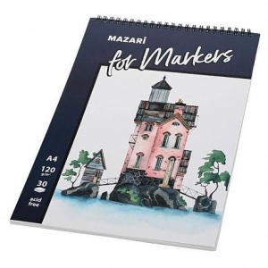 Скетчбук для работы маркерами А4 30л 120 г/м2 на спирали