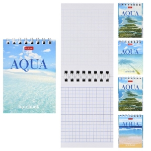 Блокнот А7 60л клетка AQUA на гребне