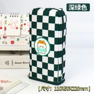 Пенал 1 отделение откидная вертикальная створка тканевый Kawai в клетку зел/бел