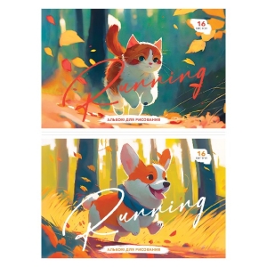 Альбом для рисования 16л А4 на скрепке Питомцы Runing эконом