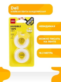 Клейкая лента прозрачная 12 мм*18.3м невидимая блистер 2шт