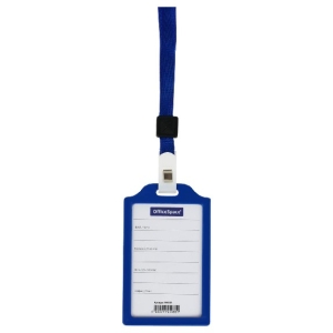 Бейдж вертикальный 85*55 мм жесткий каркас синий без держателя