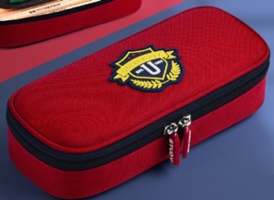 Пенал 1 отделение с вкладышем тканевый темно-красный с синей молнией University