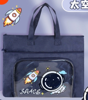Сумка для дополнительных занятий А4 с прозрачным карманом Астронавт Space синяя