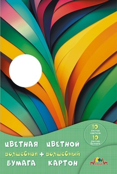 Картон волшебный А4 10л 10 цв + цветная бумага 10л10 цв Цветные полоски
