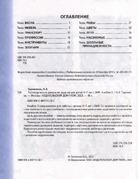 Альбом 3 предназначен для работы с детьми 5-7 лет с ОНР. Он является составной частью комплекта из трех альбомов с логопедическими домашними заданиями по различным лексическим темам.
