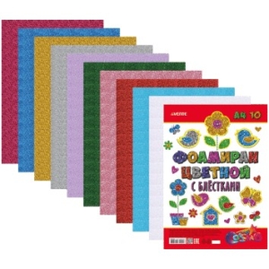 Фоамиран цветной с блестками A4 10 цв 10л толщина 2 мм